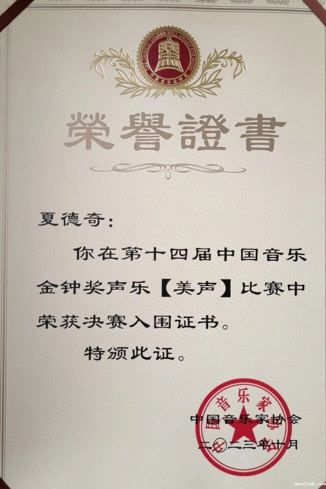 祝贺我院歌剧与声乐学部2022级研究生夏德奇在第十四届中国音乐金钟奖荣获佳绩