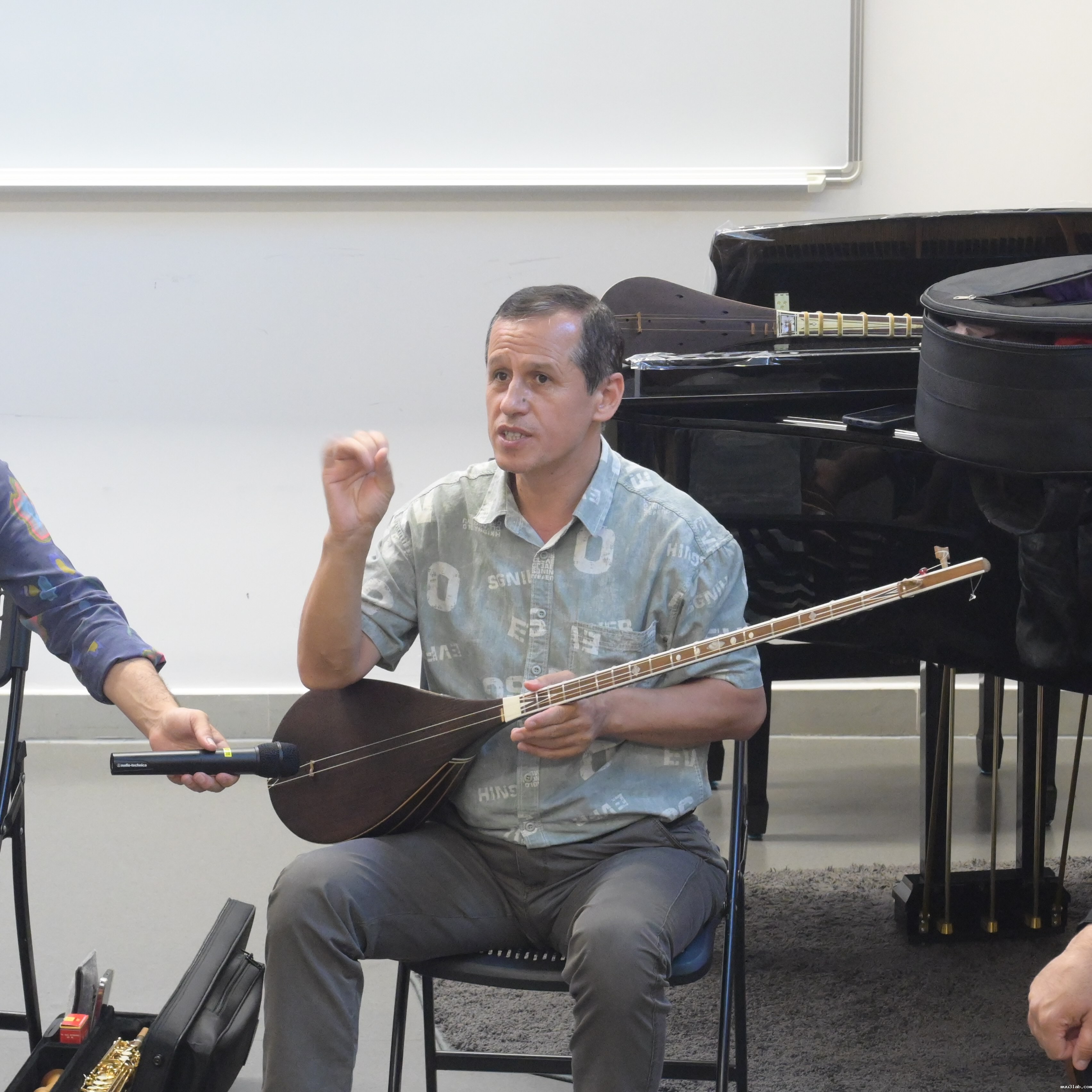工作坊在吴蛮老师的带领下,各位艺术家从“乐”入手,首先为大家展示了乌兹别克斯坦的经典作品《塔什干》。这首极富特性的音乐加之演奏家们的精彩演绎,成功点燃观众们的热情,赢得了阵阵掌声。之后,各位艺术家依次详细介绍了特色乐器以及背后的溯源典故。