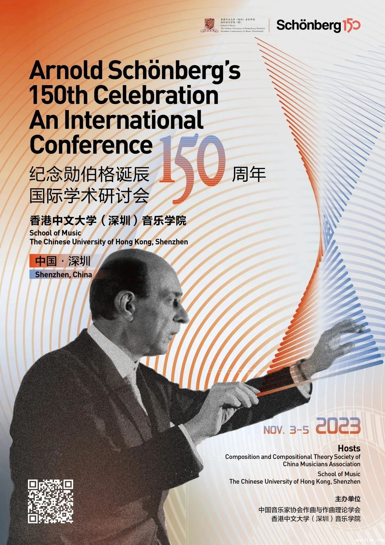 To commemorate the 150th anniversary of the birth of the great 20th-century composer Arnold Schoenberg and promote contemporary music composition and music theory research, the Composition and Compositional Theory Society of China Musicians Association, in collaboration with the School of Music of The Chinese University of Hong Kong, Shenzhen, is taking the lead globally in launching commemorative and academic events. They are planning to jointly host the "Arnold Schoenberg's 150th Celebration An International Conference" from November 3 to 5, 2023.